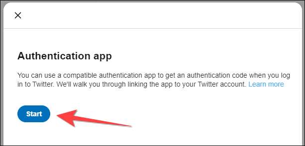 En popup för autentiseringsappen visas och klicka på "Start" -knappen på den.