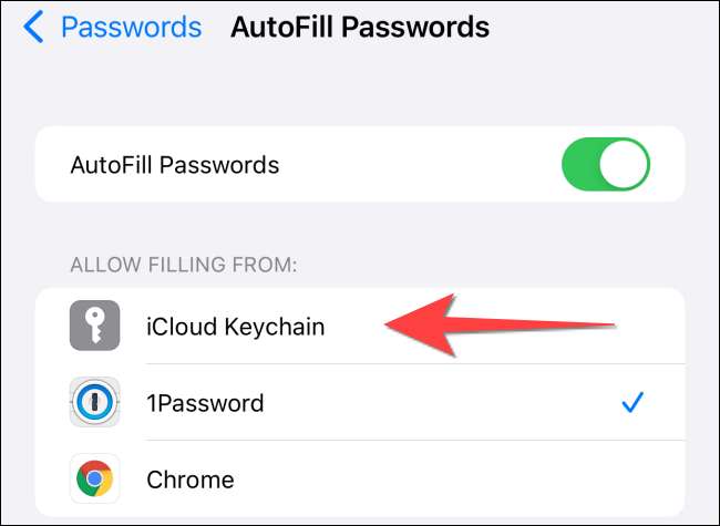 Under avsnittet "Tillåt fyllning från" trycker du på alternativet "ICloud Keychain" för att välja det.
