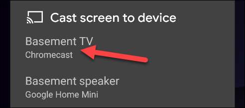 Om du inte har "Screen Cast" Växla i snabbinställningarna måste du spegla din skärm med Google hem app . Öppna appen på din Android-telefon eller surfplatta och välj den enhet som du vill spegla din skärm till.
