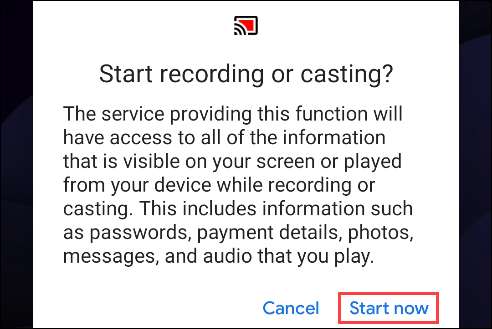 Slutligen kommer ett annat meddelande att förklara att all information som är synlig på din skärm kommer att vara tillgänglig för tjänsten. Tryck på "Start nu" om du håller med om det.