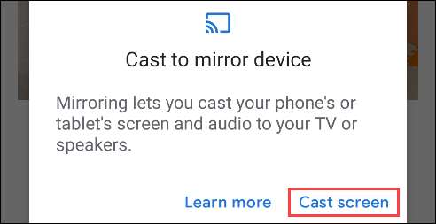 Du får se ett meddelande som förklarar vilken spegling som gör. Tryck på "Cast Screen" för att fortsätta.