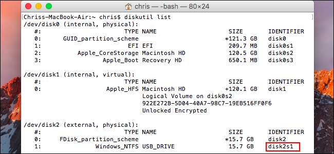När du ansluter en NTFS-enhet till datorn kör du följande kommando för att lista alla diskpartitioner: