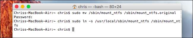 sudo mv / sbin / mount_ntfs /sbin/mount_ntfs.original sudo ln -s / usr / local / sbin / mount_ntfs / sbin / mount_ntfs