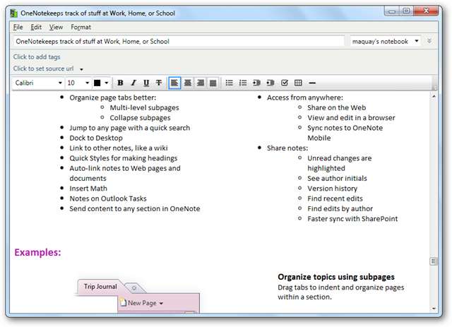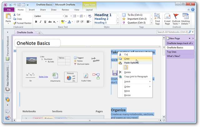 Tack och lov, kopiera och klistra in från OneNote till Evernote fungerar bra. Du kan välja allt på din anteckning genom att trycka på Ctrl + A och sedan kopiera det och klistra in det i Evernote. Här är vår anteckningsbok i OneNote: