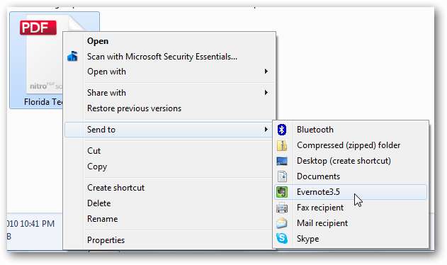 När den är klar högerklickar du på PDF-filen i Utforskaren och väljer Skicka till Evernote . Alternativt kan du kopiera och klistra in PDF-filen i en ny eller befintlig Evernote-anteckning.