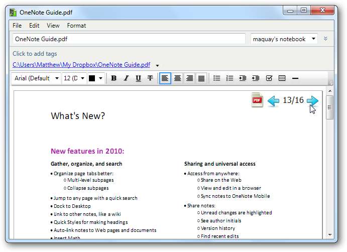 När din PDF är i Evernote kan du bläddra igenom sidorna direkt i Evernote eller dubbelklicka på dokumentet för att öppna den i din standard PDF-läsare. Observera att varje enskild sida från OneNote kommer att vara minst en sida i din PDF, beroende på hur länge dina anteckningar var.