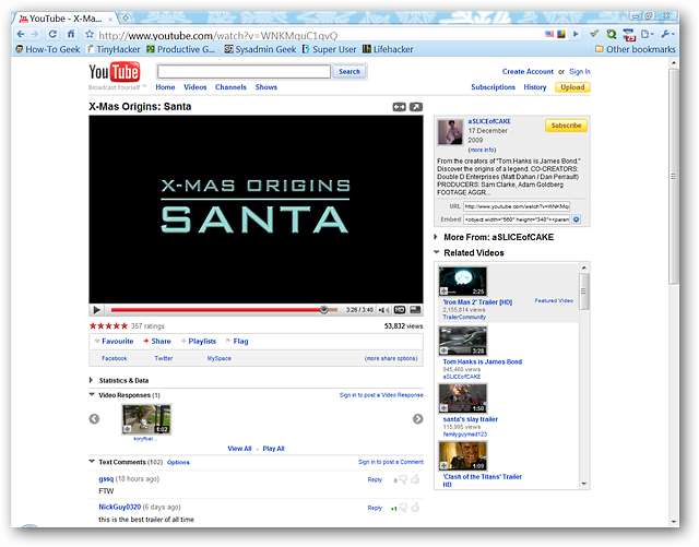 När tillägget är installerat kommer det att finnas en märkbar skillnad i layouten på webbsidan och den nya standardstorleken på videon (HD-version). Alla ”sektioner” som ursprungligen omgav videon till höger och under den kommer att kombineras till rullningsbara områden på höger sida. Din video kommer att synas oavsett om du bläddrar igenom relaterade videor, visar de kommentarer som har lagts till etc.