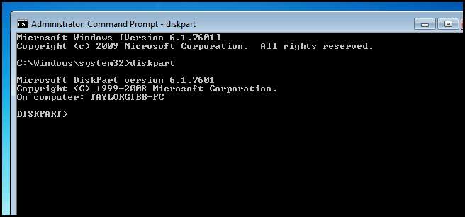 Därefter måste vi använda diskpart-kommandoradsverktyget:
