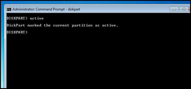 Det är viktigt att markera partitionen som aktiv, så att Windows vet vilken partition som ska startas från: