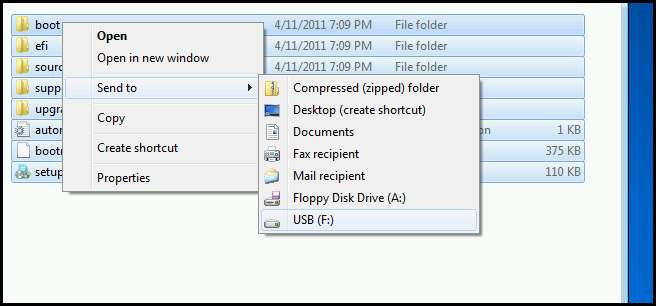 Öppna nu Explorer och välj alla filer på din Windows DVD och skicka dem till din USB.