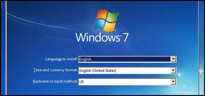 Nu när vi känner till kraven och har lite bakgrundskunskap om Windows 7, låt oss ta en titt på hur man gör en ren installation. Vi kommer att använda en DVD för att göra installationen, så starta din virtuella dator, montera en ISO och följ med. Det första du behöver göra är att välja ett språk för installationsguiden. Det är värt att notera att detta inte är samma inställning som språk i Windows.