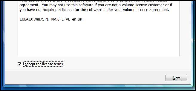 På typiskt Microsoft-sätt måste du acceptera licensavtalet innan du fortsätter.