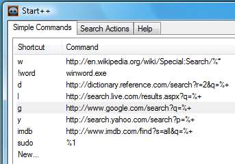 Start ++ är ett litet tilläggsprogram som låter dig skapa alias av ord och tecken till kommandon eller sökningar. Du kan ställa in kommandona så att de körs med administratörsbehörighet. Du kan till och med spara kommandon som "Startlets" och dela dem med dina vänner.