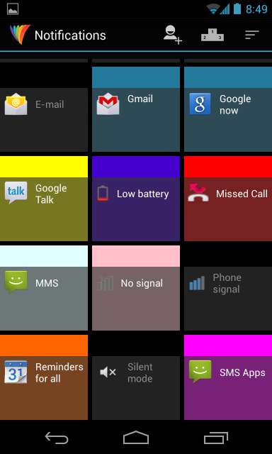 Om du har en meddelande-LED som blinkar, vet du att din telefon har något att berätta för dig. Men du vet inte nödvändigtvis vad. Med Light Flow kan du ställa in olika LED-färger för olika aviseringar. Du kan få ett gult ljus att blinka när du har ett missat samtal, ett grönt ljus när du har ett sms, ett blått ljus när du har ett nytt e-postmeddelande och ett rött ljus när telefonen har låg batterinivå och måste anslutas in. Du kan styra vilka typer av aviseringar som producerar en aviseringslampa - Light Flow stöder aviseringar från över 550 olika appar.