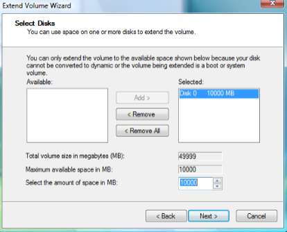 På den här skärmen kan du ange det belopp som du vill öka partitionen med. I det här fallet kommer jag att utvidga den till den ungefär 50 GB storleken som den var tidigare.