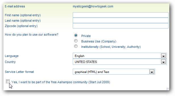 Du borde veta att Ashampoo gillar att försöka få dig att använda sina andra produkter så det finns lite av en process för att få den fullständiga licensierade versionen av detta shareware. Se till att kryssrutan bredvid “Hämta fullständig versionnyckel” är markerad vilket öppnar deras webbsida för registrering.