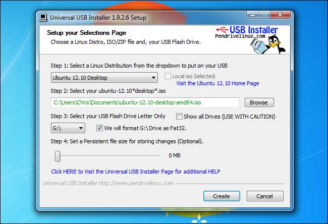 - USB-enhet : Först måste du ladda ner en Ubuntu ISO-fil från Ubuntu nedladdningssida . Ubuntus webbplats erbjuder enkla, trestegsinstruktioner för skapa en startbar USB-enhet från den nedladdade ISO-filen .