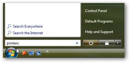 För att dela skrivaren på en Vista-maskin, klicka på Start och gå in skrivare i sökrutan och tryck på Enter.