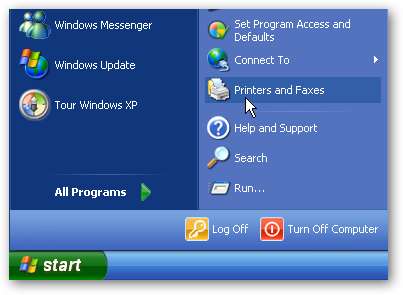 För att dela en skrivare från XP, klicka på Start och välj Skrivare och fax .