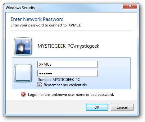 Skriv in användarnamnet och lösenordet för den datorn ...