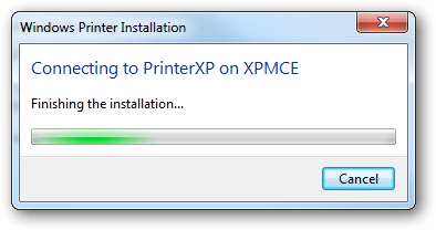 Vänta medan Windows ansluter till skrivaren och installerar den ...