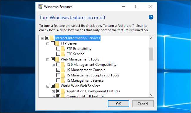 Det är i alla fall sant för standardtjänsterna. Ett undantag är ytterligare tjänster du kan installera. På Professional-versioner av Windows kan du till exempel välja att installera Internet Information Services (IIS) webbservern från dialogrutan Windows-funktioner . Detta är en webbserver som kan köras i bakgrunden som en systemtjänst. Andra tredjepartsservrar kan också köras som tjänster. Om du skulle installera en server som en tjänst och exponera den för Internet kan den tjänsten vara ett säkerhetsproblem. Men det finns inga sådana tjänster i standardinstallationen för Windows. Det är efter design.