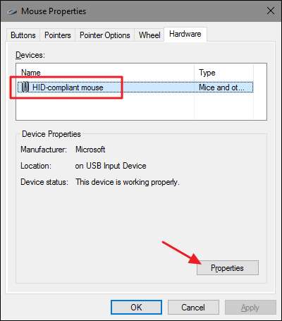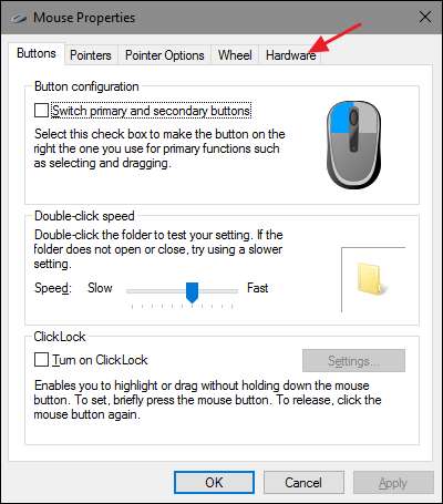 I fönstret "Egenskaper för mus" växlar du till fliken "Hårdvara".