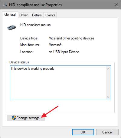 Klicka på knappen "Ändra inställningar" i musens egenskaper.