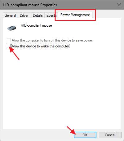 Byt till fliken Energihantering och stäng av alternativet "Tillåt att den här enheten väcker datorn".