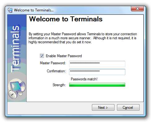 När du först installerar applikationen blir du ombedd att ange ett huvudlösenord, vilket förmodligen är en bra idé: