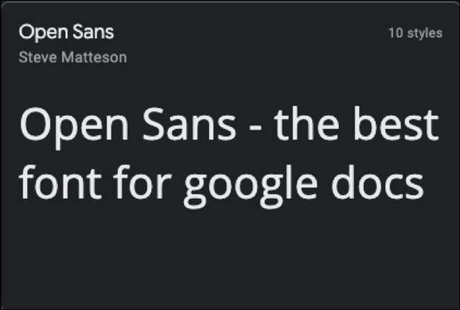 Notera: Google Docs erbjuder endast 30 teckensnitt som standard. För att se öppna sans i alternativet Fonts, måste du Lägg till det i Google Docs .