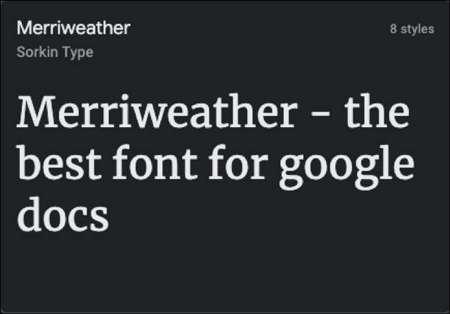Denna typsnitt var designad av Sorkin-typ, och dess signaturstil balanserar estetik, uttryck och verktyg. Inte konstigt varför Merriweather avger ett polerat och elegant utseende, vilket gör att dina dokument ser mer professionell ut.