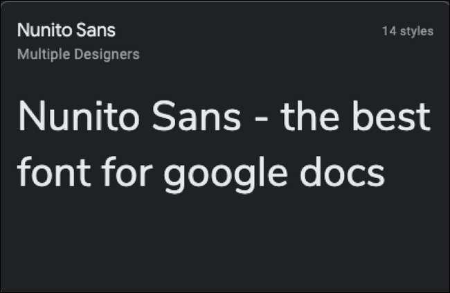 Den sista på listan är Nunito sans. Den har sju viktstilar tillgängliga på Google Docs. Denna typsnitt är en välbalanserad sans serif typeface.