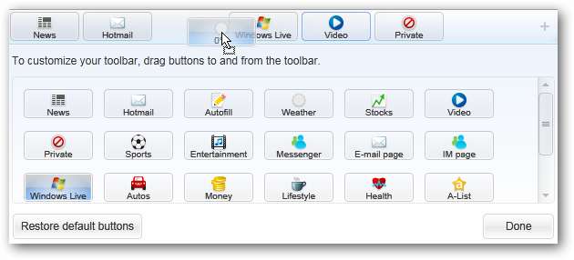 Det låter dig anpassa knapparna du vill visa i baren. Du kan också glida dem runt till olika positioner, liknande hur du kan i Aktivitetsfältet i Windows 7.