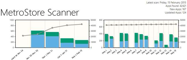 Statistikfans kommer med glädje att se information om hur många nya appar som har lagts till och hur många som har uppdaterats. Diagram är tillgängliga för att illustrera historiska data.