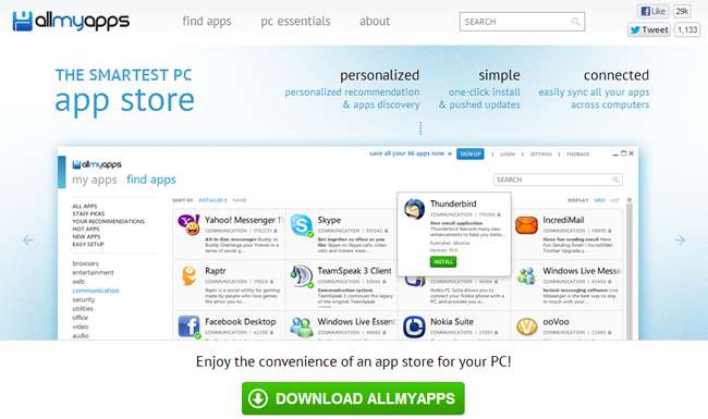 Kör igenom installationen för att få programvaran igång, så får du tillgång till en intressant uppfattning om den traditionella appbutiken. Det fungerar som en kombination av Ninite och Allmyapps, så att du kan välja de appar du vill ladda ner från katalogen och ta hand om resten för dig.