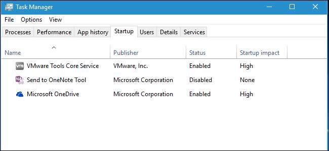Du hittar den här informationen på på fliken Startup i Aktivitetshanteraren . För att komma åt den, öppna Aktivitetshanteraren genom att högerklicka på aktivitetsfältet och välja “Aktivitetshanteraren” eller trycka på Ctrl + Skift + Escape och klicka på fliken “Startup”. Om du inte ser fliken Start, klicka på "Mer information" längst ner i fönstret.