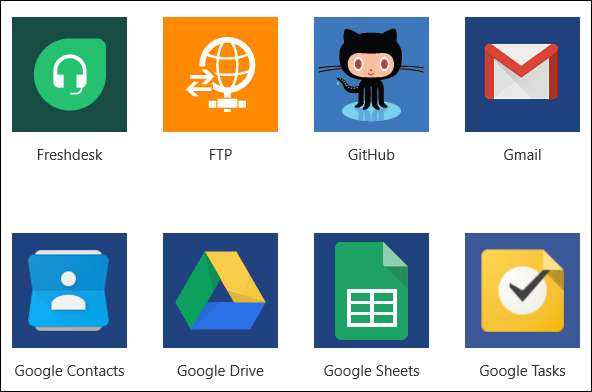 Det finns kontakter för ett stort antal applikationer, inklusive alla Microsoft-applikationer med ett SAAS-gränssnitt (inklusive GitHub), tillsammans med kontakter för Slack, Dropbox, Gmail, MailChimp, Jira, Twitter, BaseCamp och dussintals till . Vissa av dem är endast tillgängliga för premiumkunder (dvs. betalda), men de flesta av dessa är företagstjänster som BitBucket och Salesforce som du inte skulle behöva som personlig användare. Det finns också kontakter för protokoll som FTP och RSS. Totalt finns det kontakter för 323 applikationer och protokoll i skrivande stund, och du kan skriv din egen om du behöver en annan.