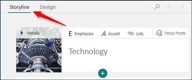 Det finns också en bestämd tonvikt på berättande, snarare än att presentera. Sway är utformad för en berättande struktur som flyter, antingen från vänster till höger eller upp till ner, och presentatören (eller läsaren) kan använda ett mushjul för att röra sig genom det snarare än en knapp eller ett klick. Detta är en liten men subtil skillnad; PowerPoint känns som en serie steg men Sway känns som en resa, så det är lättare att följa flödet som om du läser naturligt. Av den anledningen har Sway inte bilder ; den har en singel story .