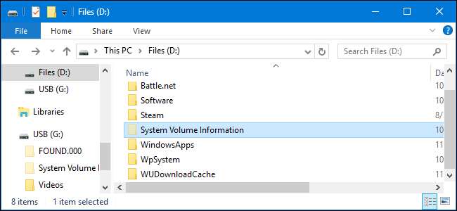På varje Windows-enhet - även externa USB-enheter - hittar du mappen "System Volume Information". Du ser det bara om du har ställt in Windows visa dolda filer och mappar , men det är alltid där. Så vad är det för?