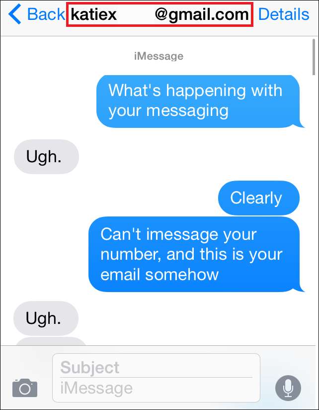 Om någon säger till dig att din e-postadress visas i sin textlogg istället för den vanliga kontakten finns det en inställning som du kan kontrollera i slutet som kan orsaka besväret.