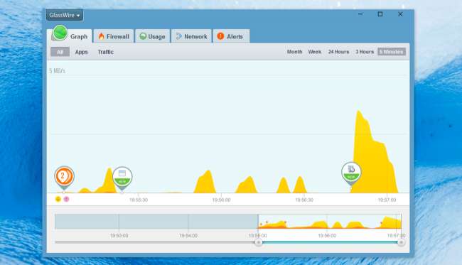 Redaktörens anmärkning: Om du vill ha en brandvägg med massor av funktioner, GlassWire är en tredje parts brandvägg som vi verkligen älskar. Istället för att bara vara en brandvägg, visar den också vackra diagram över nätverksaktivitet, låter dig gå in i exakt vilken applikation som ansluter till var och hur mycket bandbredd en enskild applikation använder.