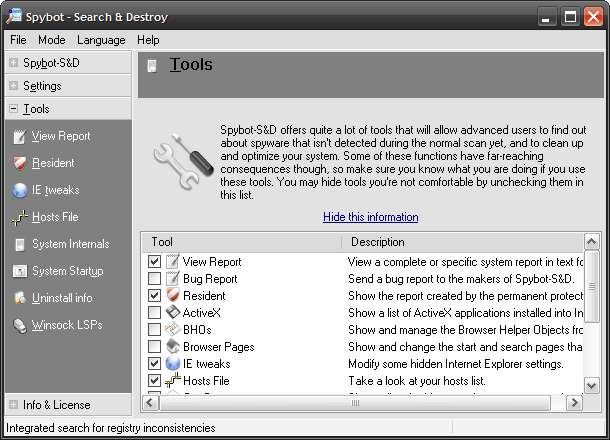 ฉันเดาว่าบรรณาธิการที่ตรวจสอบ Spybot และตอนนี้คิดว่าเป็นเทคโนโลยีเดิมไม่เข้าใจจริงๆว่าแอปพลิเคชันนี้มีประสิทธิภาพเพียงใด ทุกคนต้องการซอฟต์แวร์ "คลิกเดียวแก้ปัญหาทั้งหมด" แบบกราฟิก ด้วยการปรับแต่งและอัปเดตให้เป็นปัจจุบันมากพอ Spybot Search and Destroy มีประสิทธิภาพทุกบิตเหมือนย้อนกลับไปในวันนั้น และฟรี! มักจะมีและตามที่นักพัฒนามักจะเป็น!