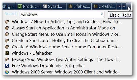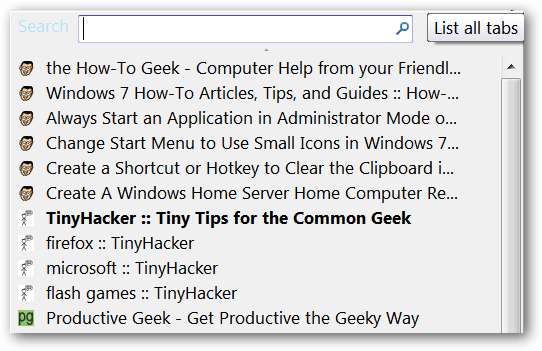 เมื่อคุณติดตั้งส่วนขยายแล้วคุณจะสังเกตเห็นความแตกต่างสองประการใน "เมนูรายการแท็บ" จะมีช่องค้นหาและแถบเลื่อนที่ดีสำหรับรายการที่ยาวมาก