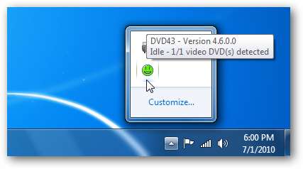 ใส่ดีวีดีของคุณลงในออปติคัลไดรฟ์ของคุณ ในขณะที่ DVD43 กำลังค้นหาคีย์เข้ารหัสไอคอนถาดระบบจะปรากฏเป็นรูปหน้ายิ้มปีศาจ ขั้นตอนนี้มักใช้เวลาเพียงไม่กี่วินาที แต่บางครั้งอาจใช้เวลานานกว่านั้น