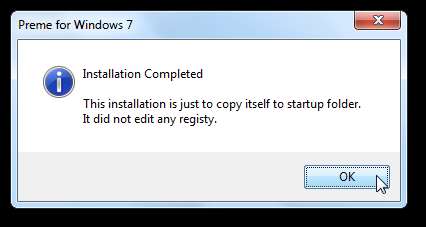 หลังจากนั้นสักครู่คุณจะเห็นข้อความแจ้งให้ทราบว่าการติดตั้งเสร็จสมบูรณ์ Preme ไม่จำเป็นต้องติดตั้งลงในคอมพิวเตอร์ของคุณ แต่เพียงแค่คัดลอกตัวเองไปยังโฟลเดอร์เริ่มต้นระบบเพื่อให้ทำงานโดยอัตโนมัติเมื่อใดก็ตามที่ Windows เริ่มทำงาน