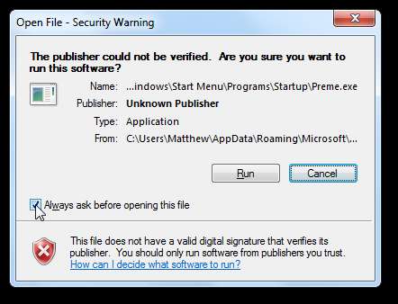 Preme จะทำงานโดยอัตโนมัติพร้อมการตั้งค่าที่คุณกำหนดเองทุกครั้งที่คุณเปิดคอมพิวเตอร์ คุณอาจได้รับแจ้งทุกครั้งที่คอมพิวเตอร์บู๊ตเพื่อยืนยันว่าคุณต้องการเรียกใช้แอปพลิเคชันนี้หรือไม่ หากคุณไม่ต้องการรับการแจ้งเตือนก่อนที่จะทำงานให้ยกเลิกการเลือกช่องแล้วคลิก วิ่ง .