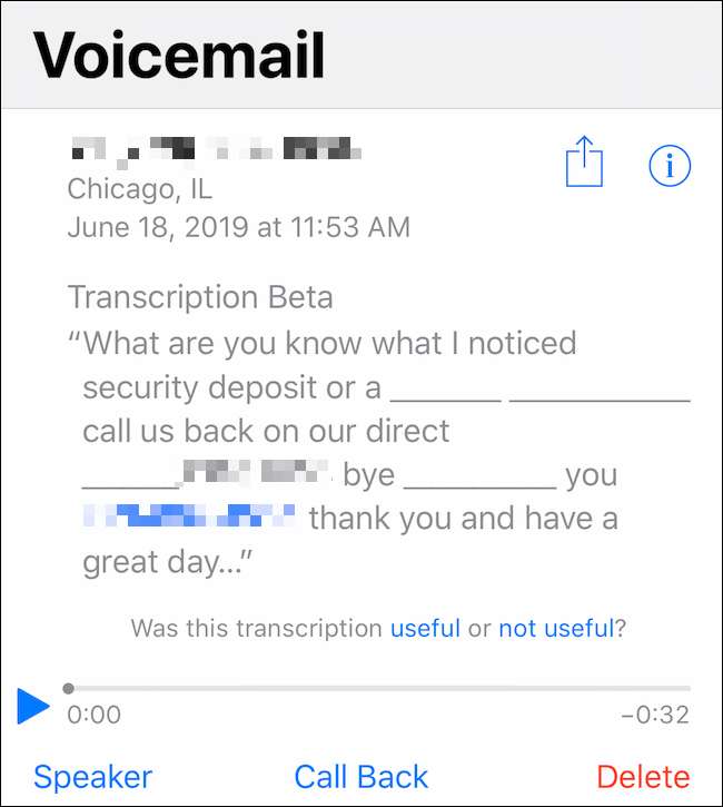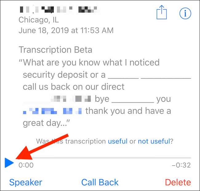 คุณจะเห็นข้อความเสียงจากผู้โทรที่ด้านบน แตะข้อความเสียงจากรายการหรือเลือกปุ่ม“ i” ที่เกี่ยวข้องเพื่อขยายข้อความเสียง