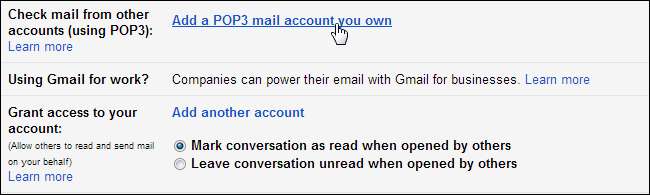 ใน Gmail ให้คลิก เพิ่มบัญชีอีเมล POP3 ที่คุณเป็นเจ้าของ ลิงค์.