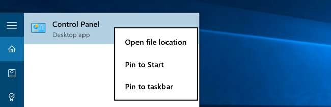 หากคุณใช้ Windows 10 คุณสามารถค้นหา "แผงควบคุม" ในเมนูเริ่มจากนั้นจะปรากฏในรายการ คุณสามารถคลิกเพื่อเปิดหรือคลิกขวาแล้วปักหมุดเพื่อเริ่มหรือปักหมุดที่แถบงานเพื่อให้เข้าถึงได้ง่ายขึ้นในครั้งต่อไป
